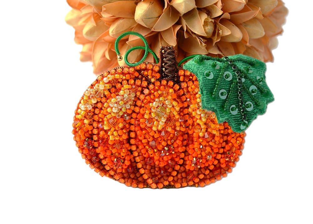 - Original pumpkin bead embroidery pattern (printed on felt)